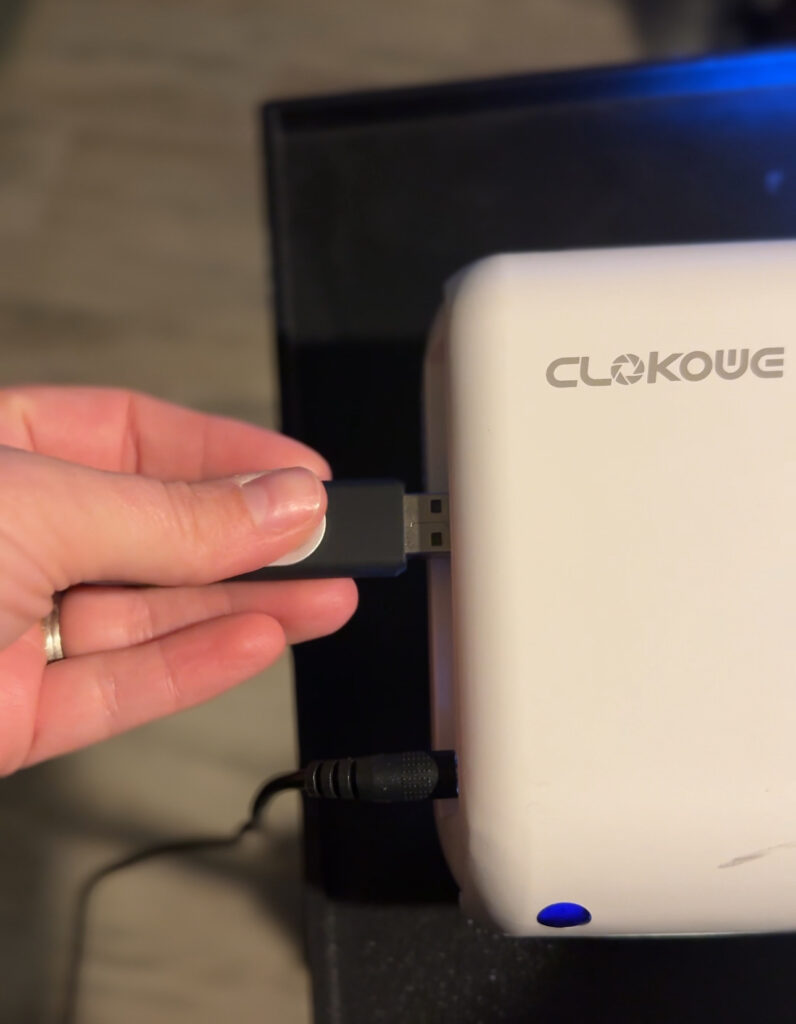 When you buy the video downloads, you can download them onto a usb drive and plug that directly into the mini projector. All the controls are on the projector to select the USB, and then it has a “loop” feature so the one video or multiple videos will loop over and over until stopped which is perfect for this holiday window display.